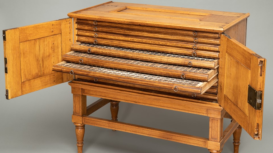 The Typographia Sinica (shelfmark: Libri sin. 19) is a cabinet furniture whose top 8 drawers contain a total of 3,287 small, stamp-shaped wooden cubes with Chinese characters. The cabinet was built around 1685 on the order of the orientalist Andreas Mueller (1630–1694) for the Great Elector Friedrich Wilhelm to facilitate the learning of the Chinese language and most probably to be used for printing a dictionary. Originally exhibited in the Elector’s library in the Berlin Palace, the Typographia Sinica is one of the most valuable objects in the East Asian Collection of the Berlin State Library and is now on display in the Humboldt Forum in the Berlin Palace. The object was 3D-digitised in connection with the exhibition. The sample data contain the 3D model of drawer 2 and 3 and of the whole cabinet.